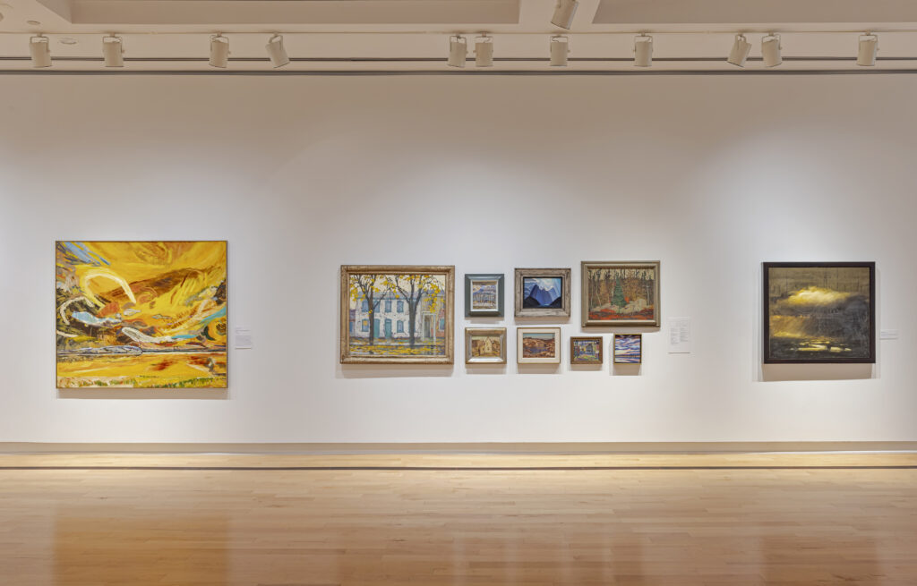 About Painters Eleven: Radical Colour Painters Eleven was the first abstract artist collective in Ontario. The Toronto group was founded in 1953 at the cottage of artist Alexandra Luke on the Oshawa–Whitby border. In the early 1950s, Toronto’s art scene was criticized for being conservative and unexciting. Painters Eleven was determined to shake things up and elevate abstraction within mainstream Canadian art. The group’s first exhibition drew crowds and received positive press, despite its radical approach to art. Banded together by a shared desire to support abstraction and exhibit collectively, the artists did not adhere to a common philosophy or style but did share a love of colour. This exhibition showcases Painters Eleven’s diverse approaches to abstraction alongside a common enthusiasm for bold, expressive colour, highlighting the individuality of each artist. Click here to learn more about Painters Eleven: Radical Colour.